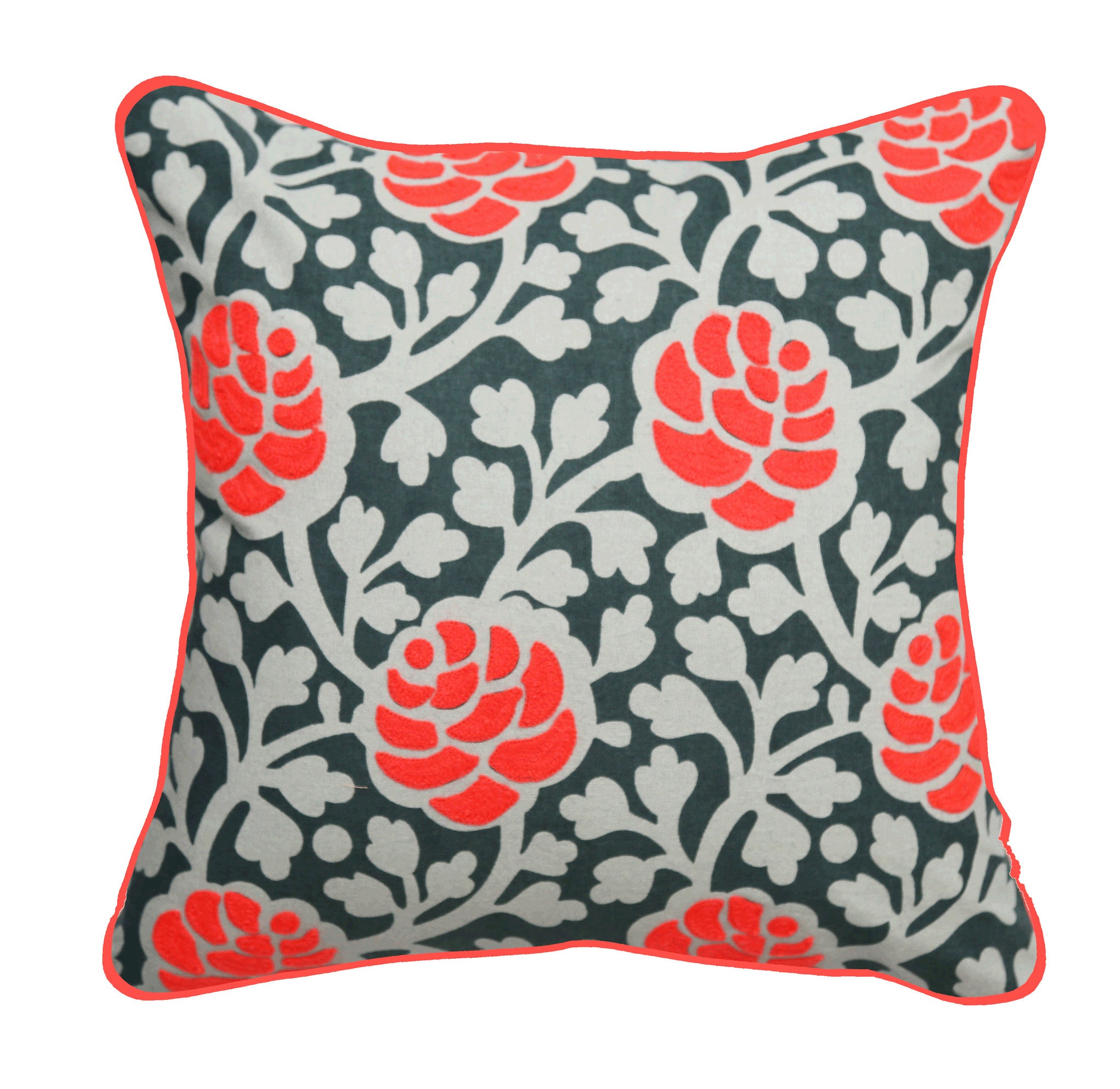 To Add to its beauty it has thread-work embroidery with Bright Orange Rose Color flowers and the same orange bright rose color piping all around it.